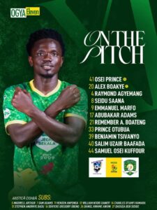 Prince Osei keeps the poles while Abubakar Adams, Alex Boakye, Remember Adomako Boateng and Samuel Osei Kuffour complete the backline.