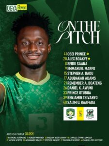 Captain Alex Boakye and Anokye Badu Stephen start as centre backs while Remember Adomako Boateng and Abubakar Adams complete the backline.