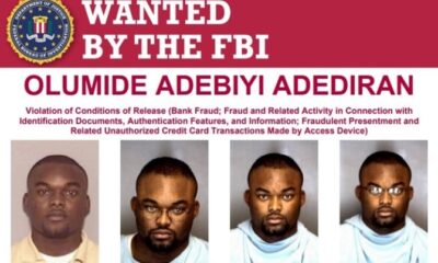 The Federal Bureau of Investigation (FBI) has placed a $10,000 bounty on information leading to the arrest and conviction of Nigerian national Olumide Adebiyi Adediran, who...