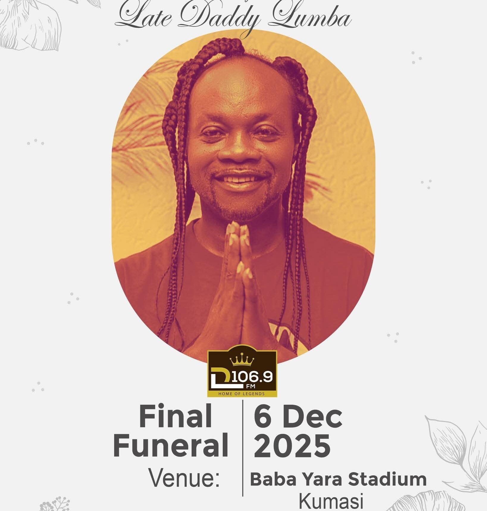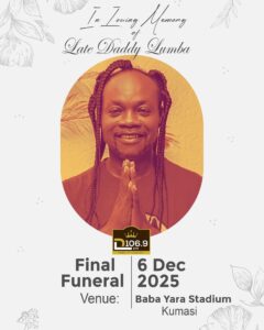 Ghanaian highlife legend Daddy Lumba will be laid to rest on December 6, 2025, at the Baba Yara sports stadium in Kumasi, according to information reaching KPDONLINE.NET