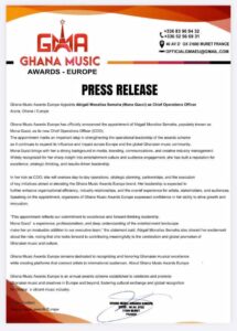 The announcement, made in Accra and Europe, marks a significant milestone in the organization’s efforts to strengthen its operational leadership as it expands its footprint across Europe and the global Ghanaian music community.