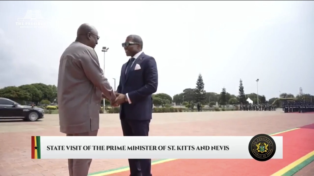 “It is my great pleasure to extend a warm and heartfelt welcome to my dear brother, the Prime Minister of the Federation of Saint Kitts and Nevis, the Honourable Dr. Terrance Drew, and his distinguished delegation to Ghana,” President Mahama said. “Mr. Prime Minister, your presence here in Accra signifies a return home.”